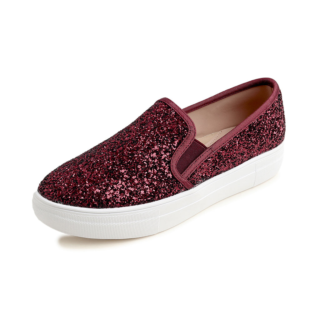 Feversole Women's Fashion Slip On Sneaker Casual Platform Loafers Glitter